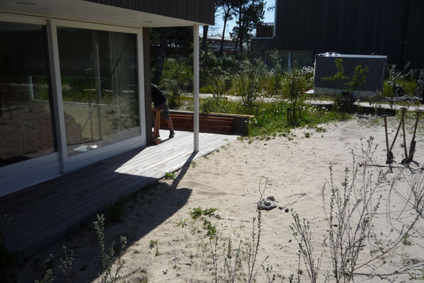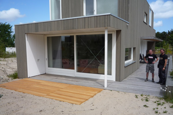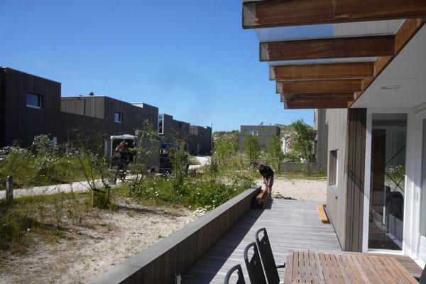 Renovatie verschillende vakantiehuisjes Schiermonnikoog. Op de foto's is een huisje te zien waar we het houten terras hebben vergroot. Het oppervlak van de vergrooting is 5,5 meter bij 1,80 meter
